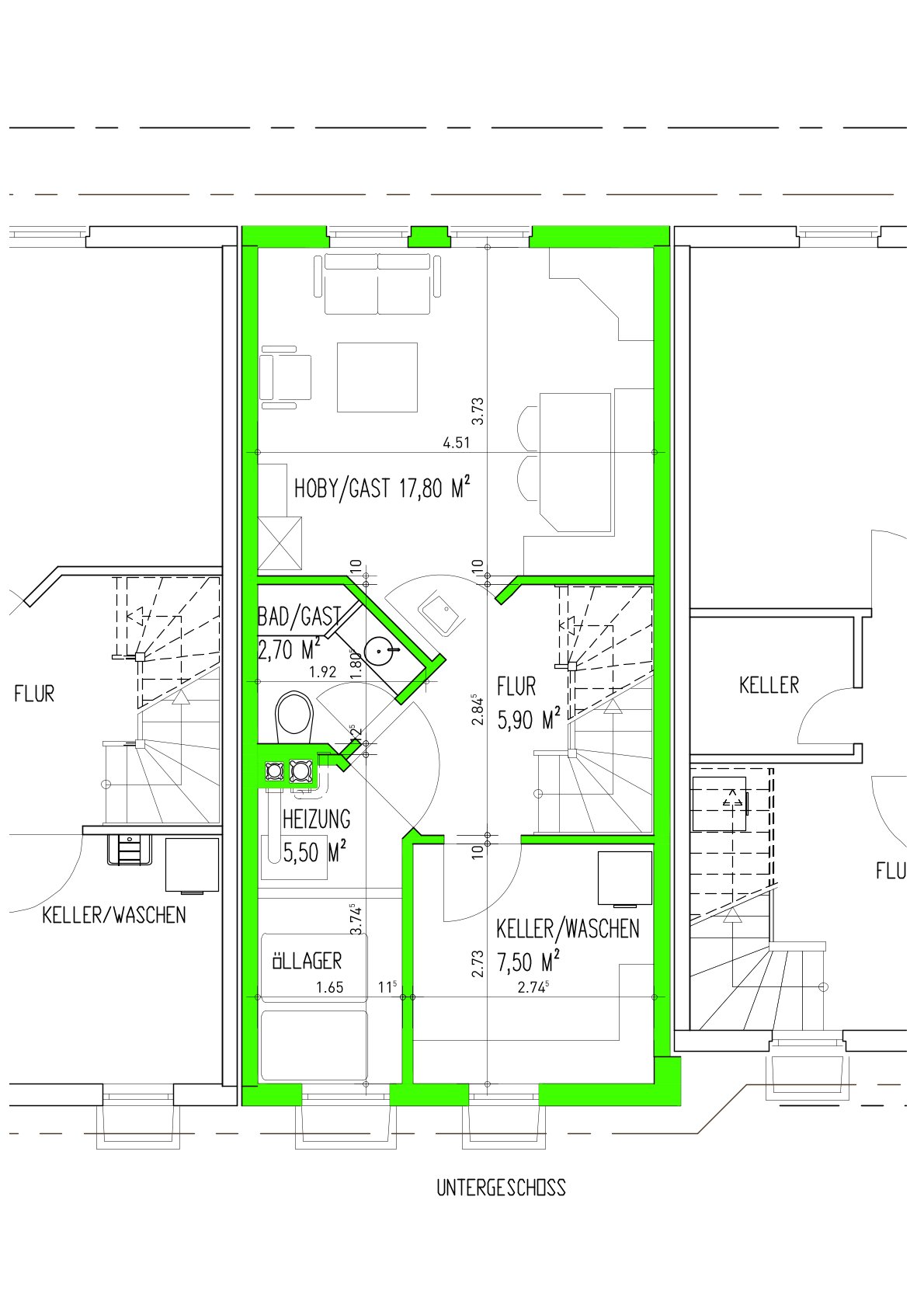 - Kellerfläche ca. 52 m²