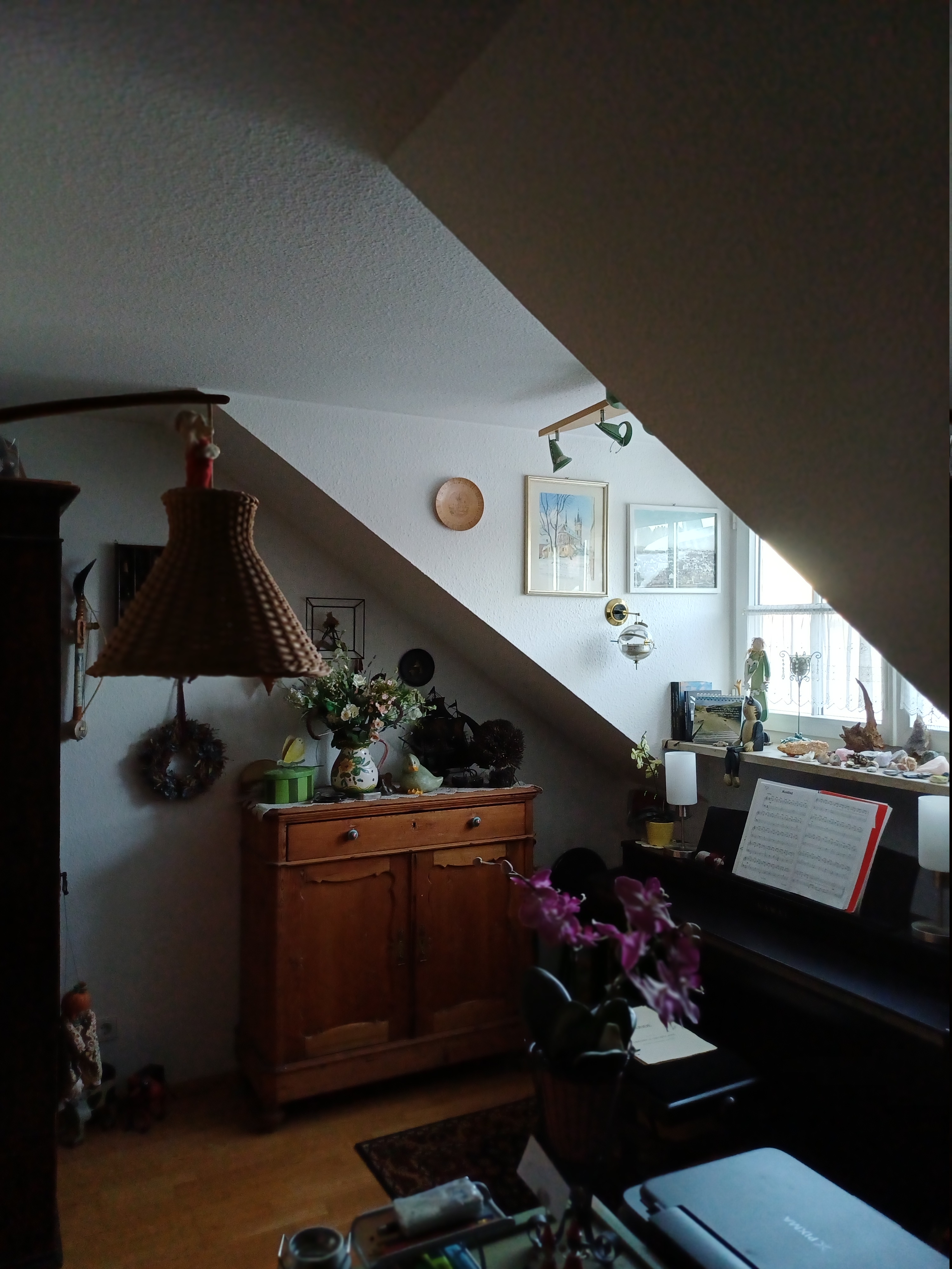 Über eine Einschubtreppe gelangt man in den ausgebauten Dachboden, der viel Stauraum bietet.