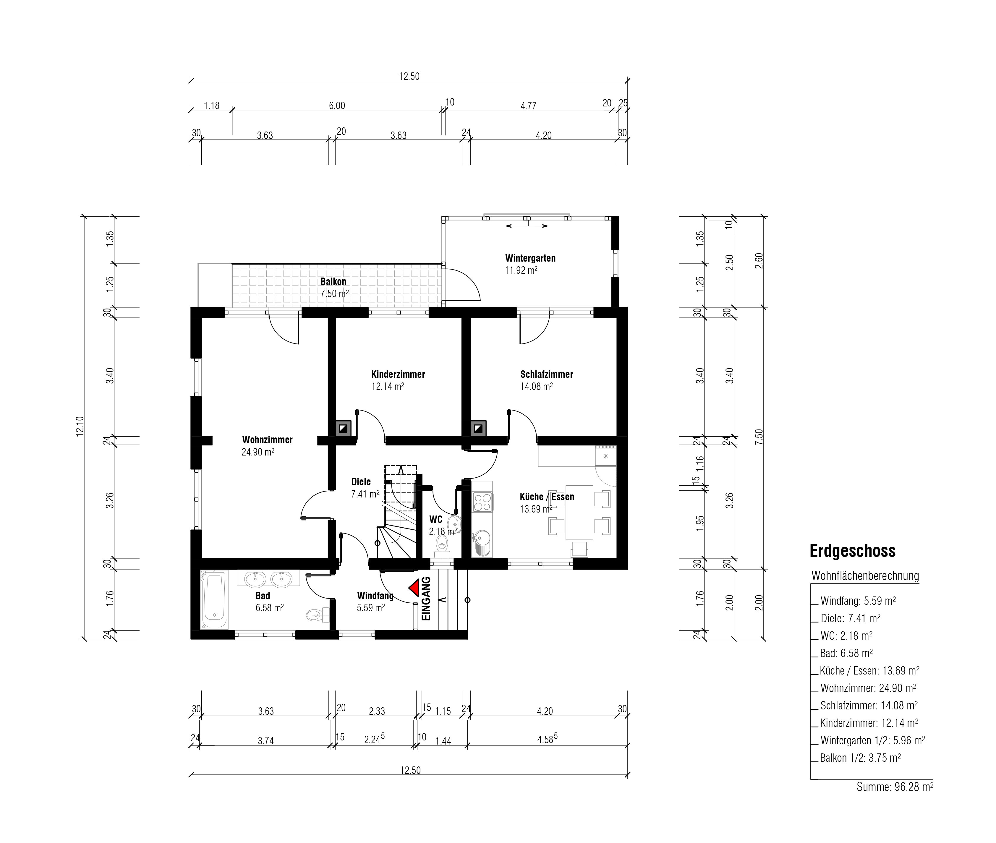 Das Einfamilienhaus bietet auf einer Wohnfläche von 174 m² ausreichend Platz für die ganze Familie und überzeugt durch eine durchdachte Raumaufteilung.