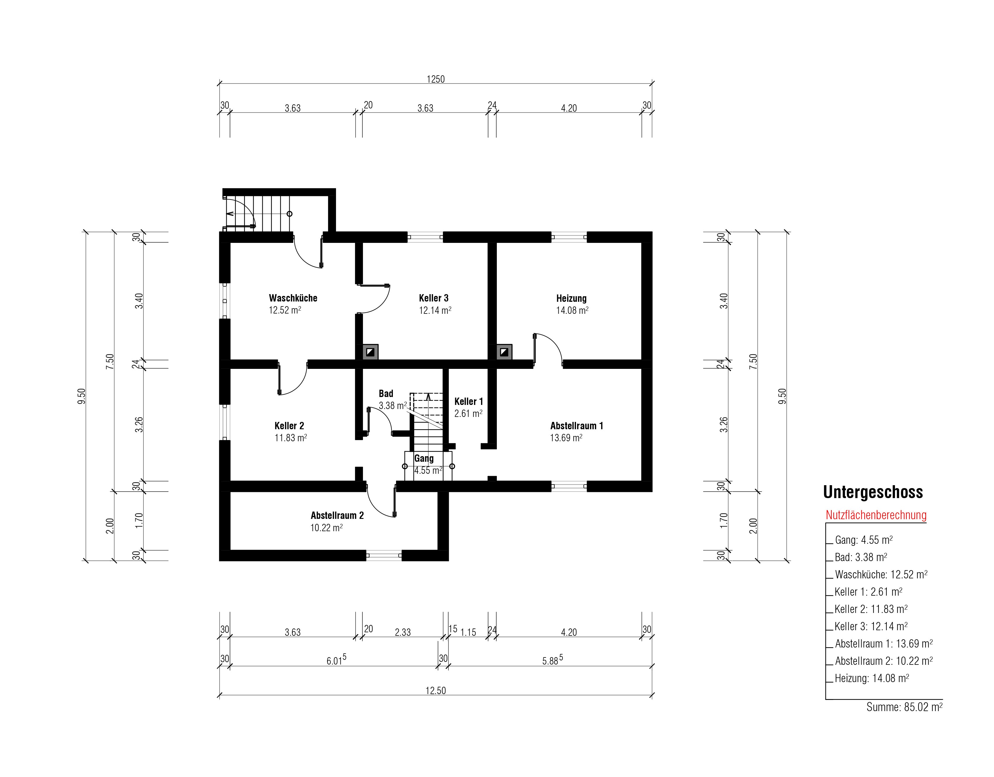 - Kellerfläche ca. 85 m²