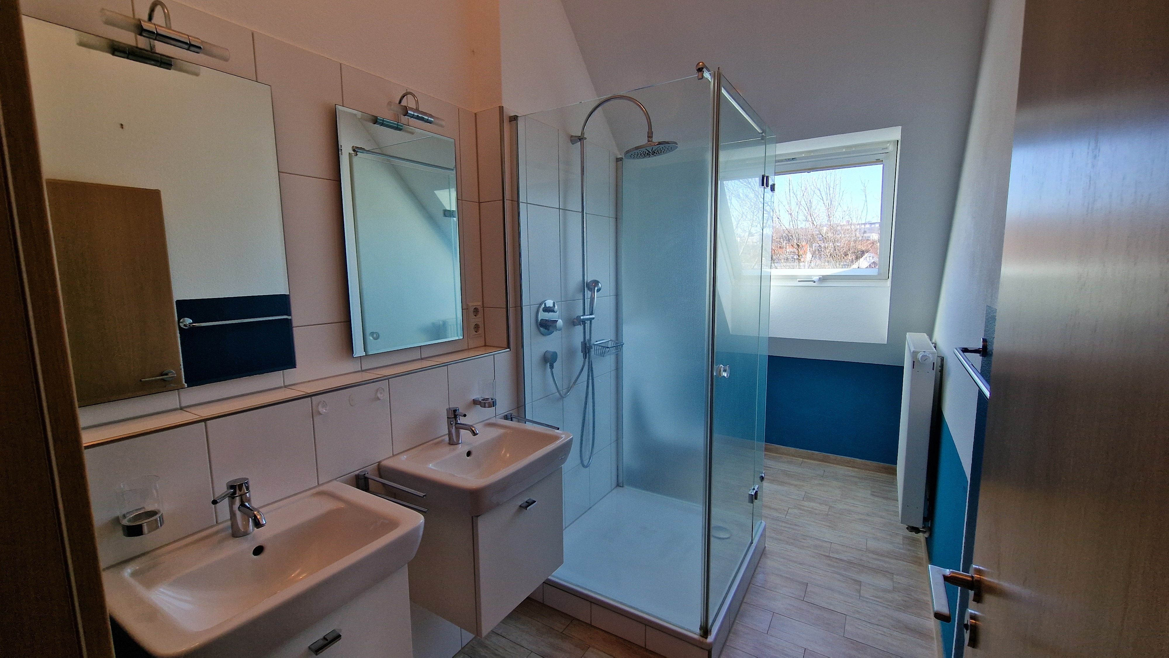 - Ausstattung des Bades Dusche Fenster Badewanne