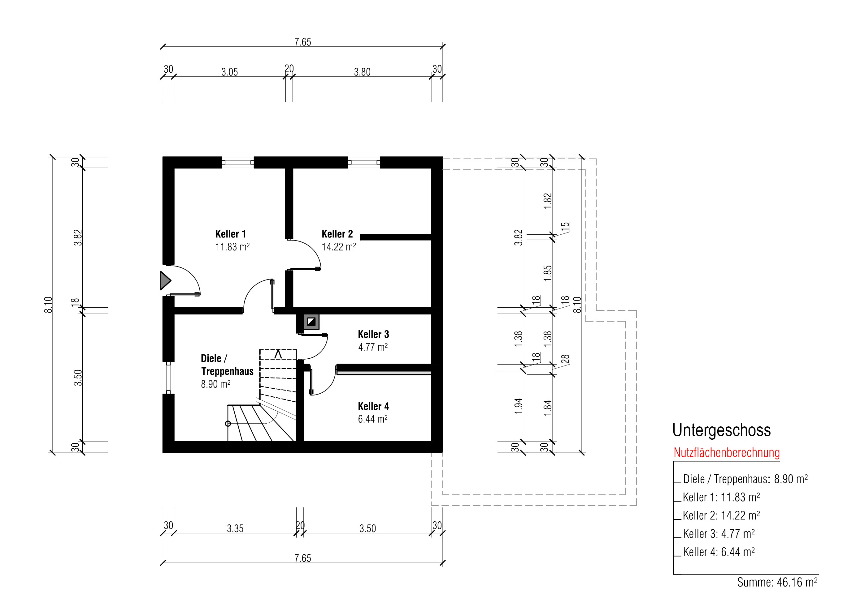 - Kellerfläche ca. 46 m²