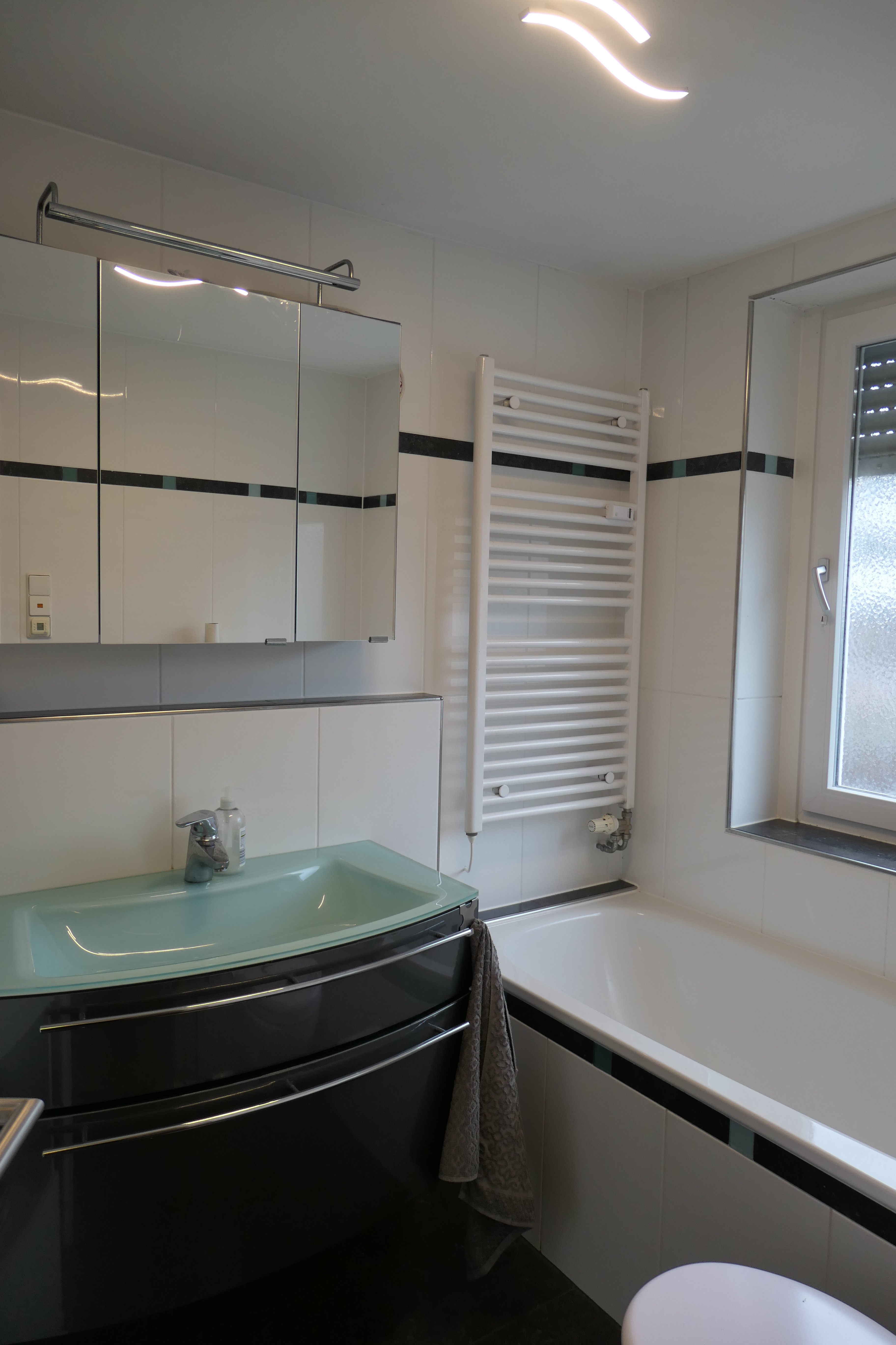 - Ausstattung des Bades Badewanne Dusche Fenster