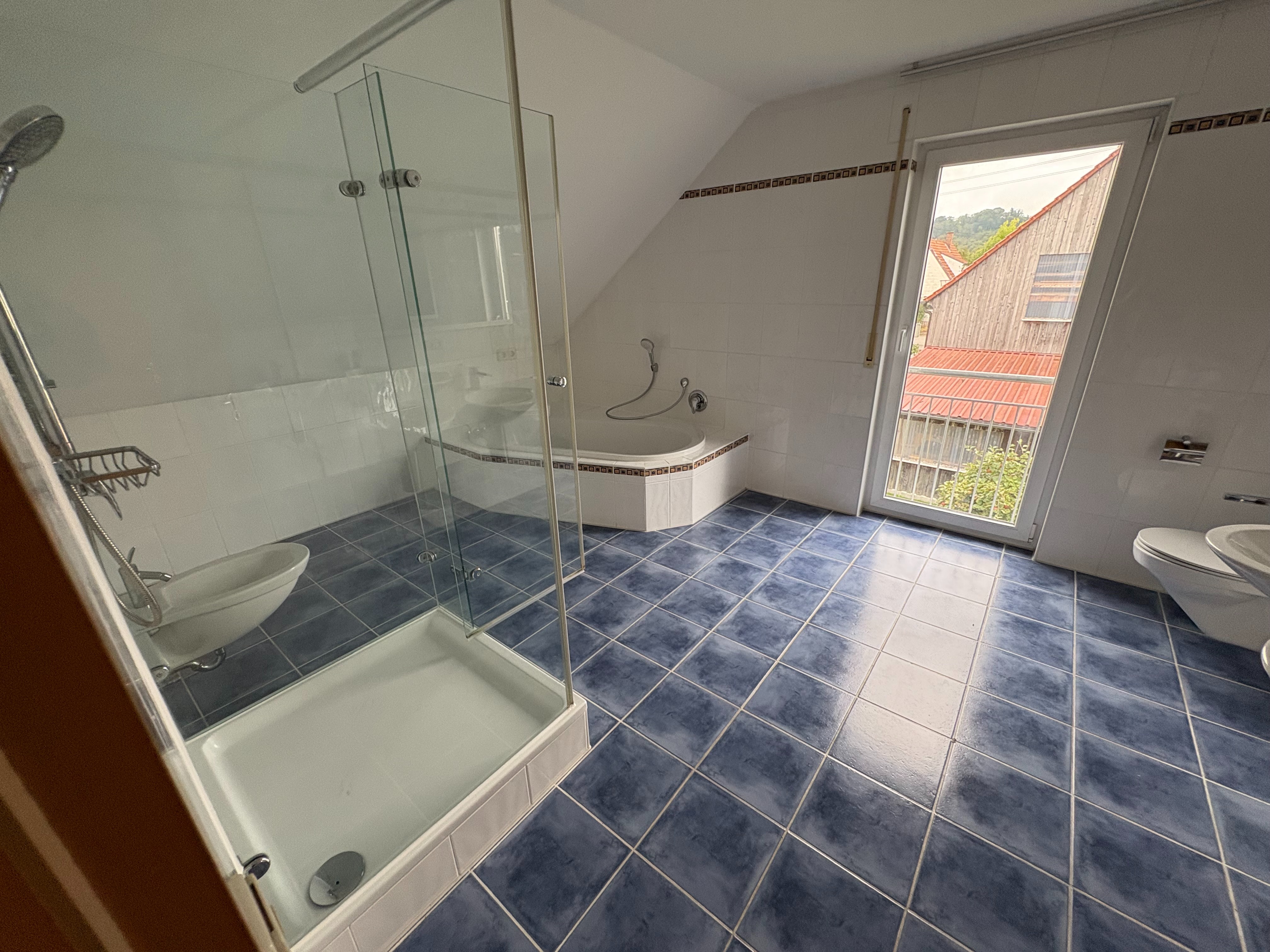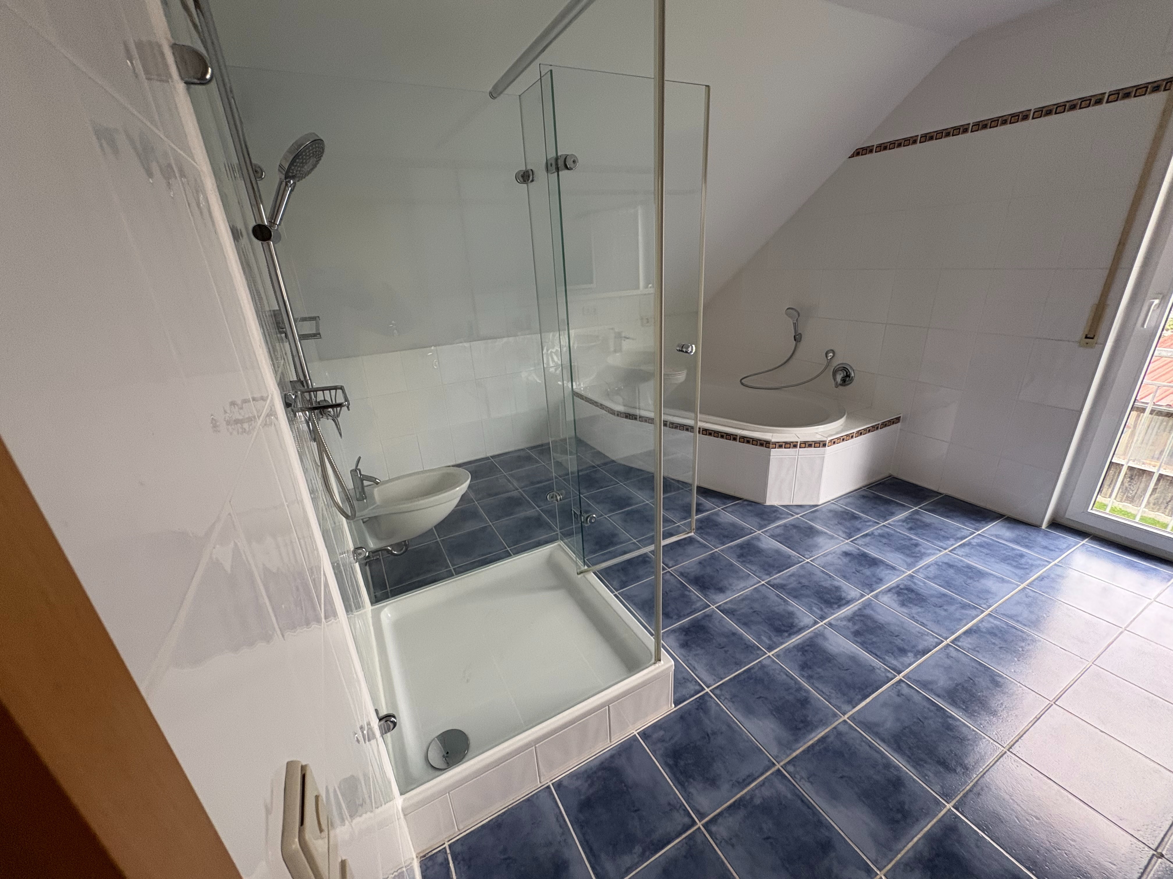 - Ausstattung des Bades Badewanne Dusche Fenster