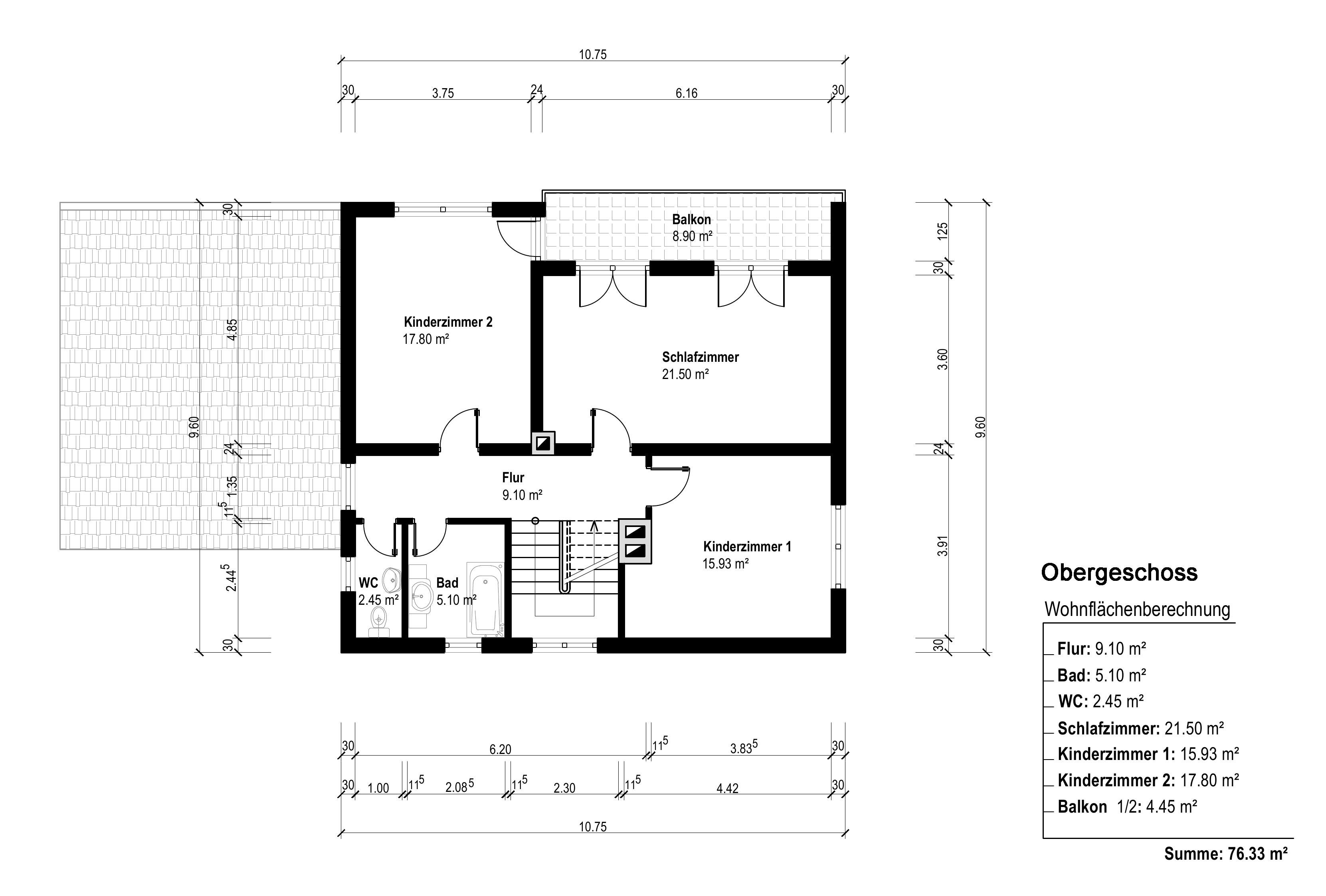 Im oberen Stockwerk befinden sich drei Schlafzimmer, die alle ausreichend Platz und Tageslicht bieten, sowie das helle Tageslicht-Badezimmer und ein Balkon mit Zugang von zwei Zimmern.
